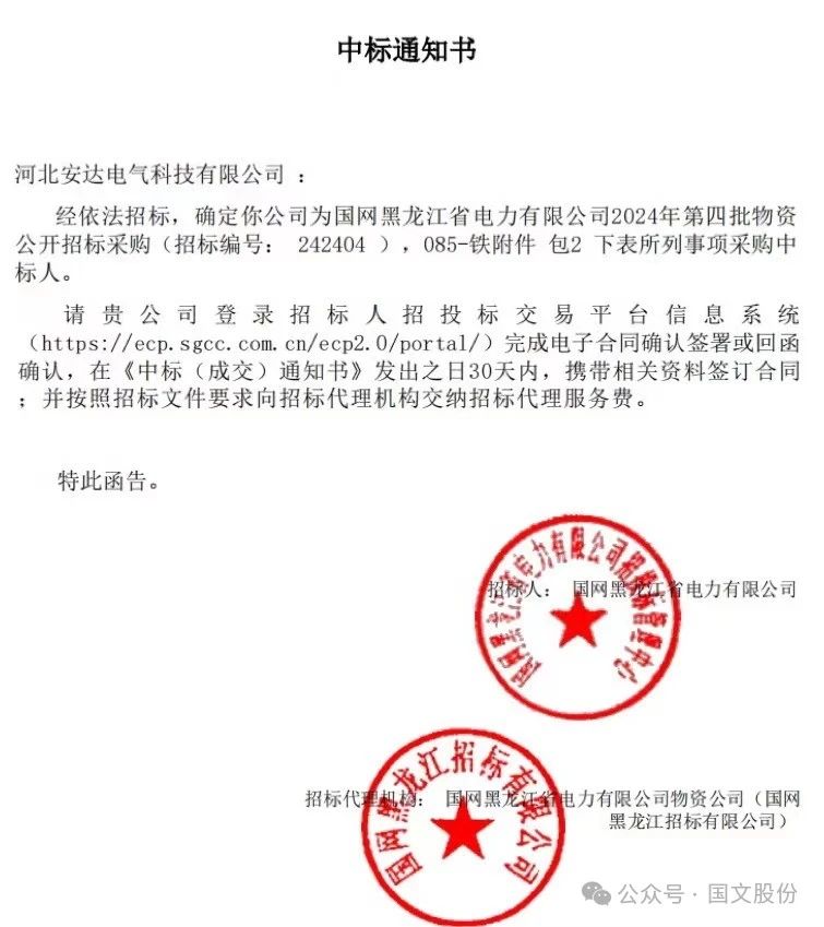 喜讯!bg真人平台电气中标国网黑龙江2024年第四批物资采购