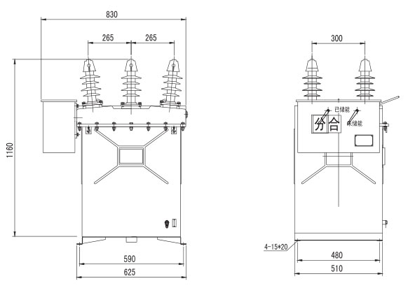 高压真空断路器为弹簧机构,机械闭锁,箱体内分为开关室、互感器室。互感器室内由两台干式电压互感器及两台干式电流互感器组成,电压互感器同时设置绕组做为断路器的分合闸机构的电源,其整体外形小巧、安装方便。电压互感器VN接线,电流互感器可制成多变比结构,以适应不同的负载需要。