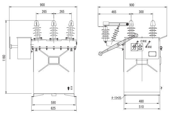图2 ZW8-12(YZD)断路器安装尺寸