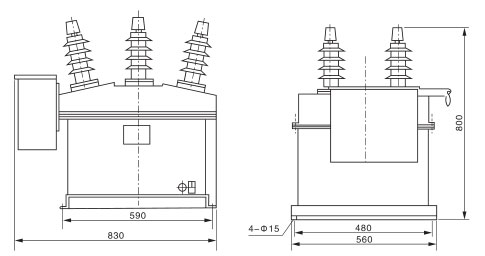 断路器由操动机构、导电回路、绝缘系统,密封件及壳体组成。整体结构为三相共箱式。导电回路是由进出线导电杆、动静端导电板、导电夹与真空灭弧室连接而成。外绝缘主要是通过硅橡胶材料来实现的,具有强抗污秽能力。内绝缘为复合绝缘。