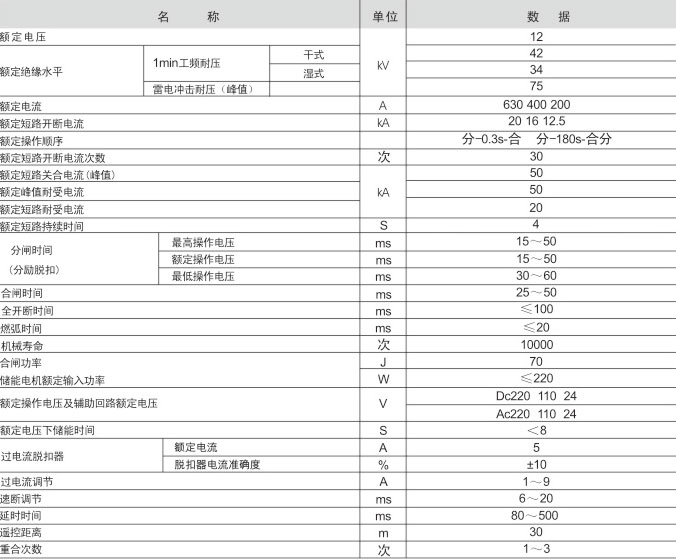 海拔高度:≤1000m(若须增高海拔,则额定绝缘水平相应提高)